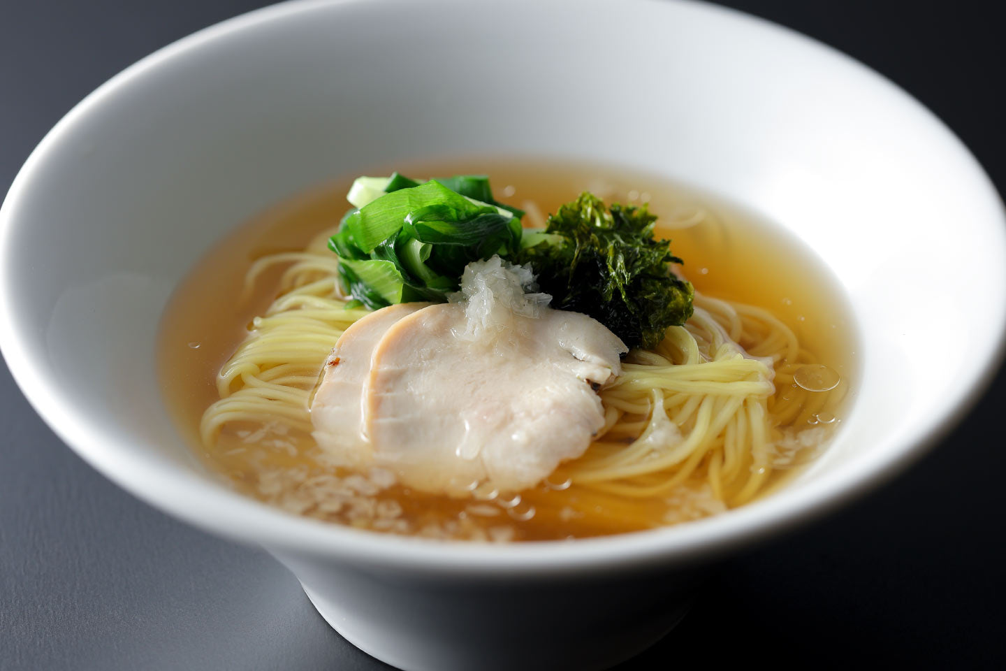 琥珀色に輝くスッポンスープを、出汁が香るラーメンに仕上げました。