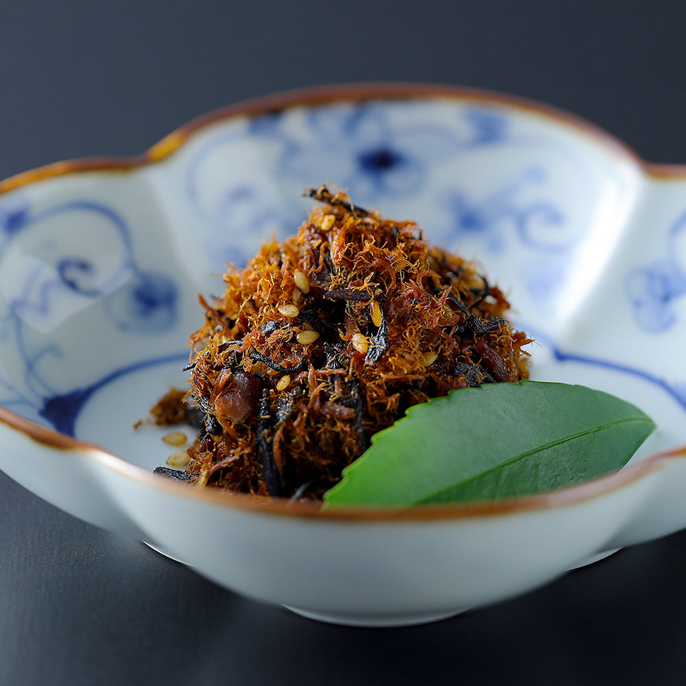 北海道産のがごめ昆布を使い、ごまや山椒と合わせました。炊き立てご飯、お茶漬けに。