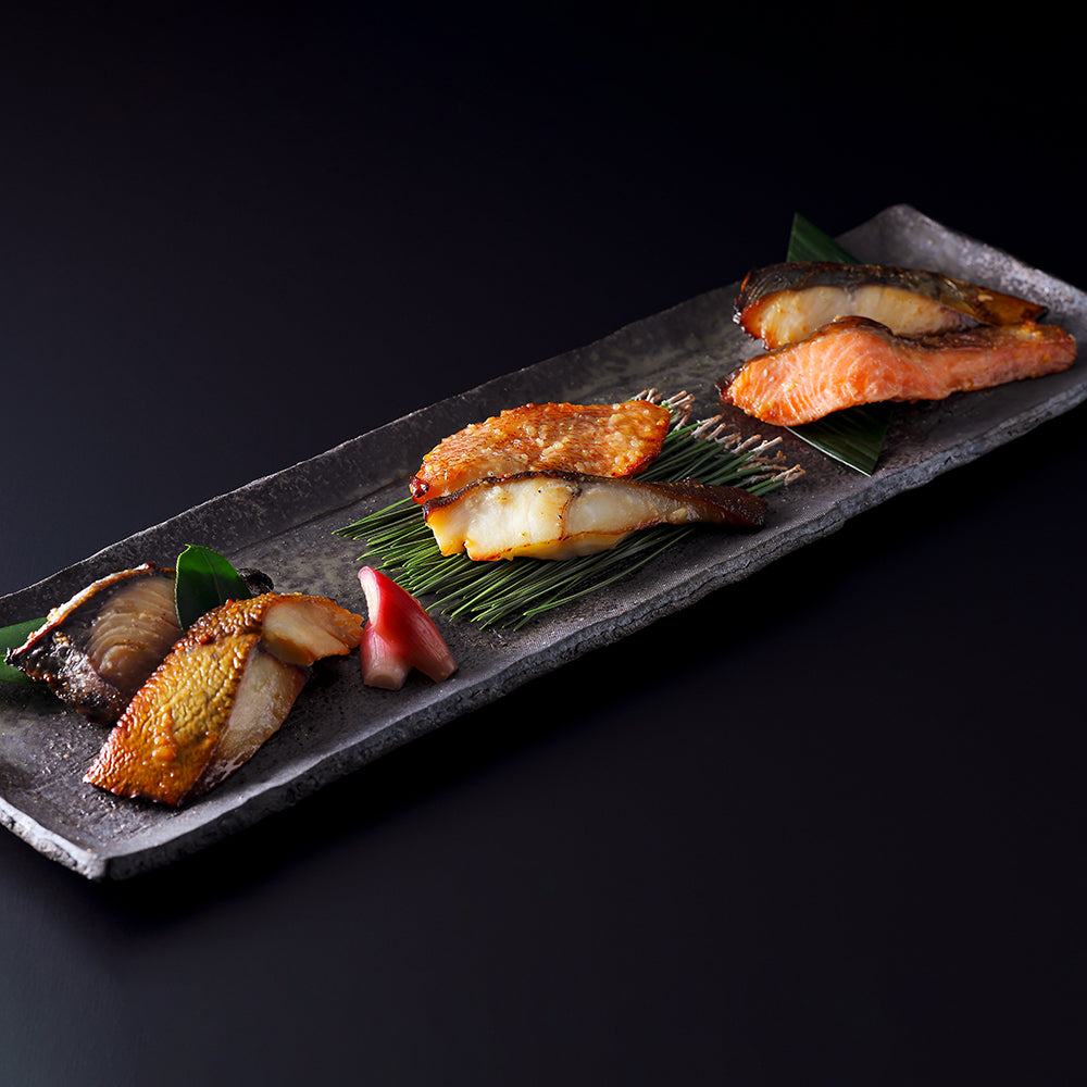 当茶寮特製の味噌床に6種の魚を丁寧に漬け込み、料亭の技で焼き上げました。